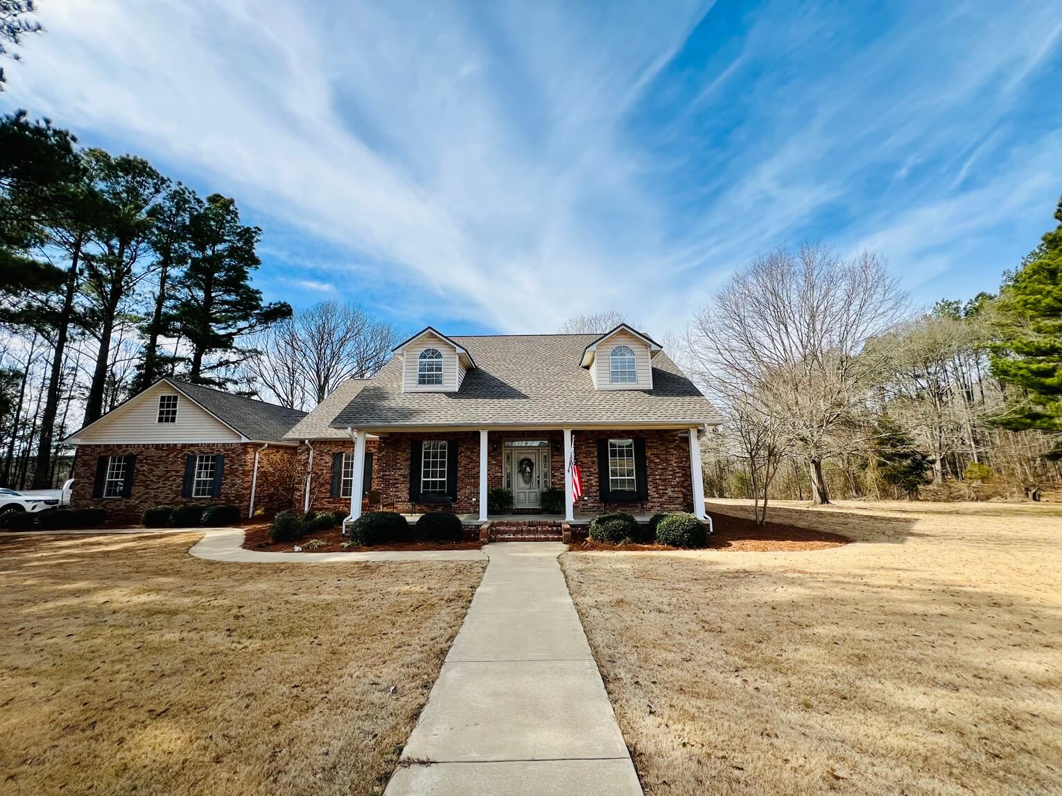 ** SOLD ** A private 5-BR, 4-full BA paradise situated at the heart of a stunning legacy cattle farm! This custom-built brick home located on +/-28 gorgeous acres offers a rare blend of modern living while giving the peaceful feeling of being miles from everywhere! This waterfront estate offers breathtaking views of the +/-8.6 acre lake & the rolling pasture land. Enjoy your morning coffee on the over-water dock or unwind by the fireplace in the cozy living room. Most of the acreage is fenced rolling pastures mixed with mature forests, creating a good blend of open spaces & wooded cover. An additional stock pond in the main pasture helps ensure a good water supply for livestock. There is an abundance of wildlife, including whitetail deer, ducks, & wild turkey, providing multiple opportunities for hunting, fishing, and wildlife watching. The lake is stocked with crappie, bluegill, bass, & catfish, offering hours of relaxation & excitement just steps from your doorstep. Recent upgrades include NEW water heaters (2) as well as a brand NEW roof! Conveniently located, with shopping, dining, & entertainment options just minutes away. Located a mere 15-20 minutes from Tupelo with easy access to Hwy 45. Whether seeking a peaceful retreat, a recreational paradise, or an idyllic family home, this extraordinary estate offers the best of both worlds. Don't miss your chance to own a piece of paradise in the heart of Mississippi's countryside – schedule your private tour today & discover the unparalleled beauty & serenity of this remarkable property. All information is deemed accurate, but is not guaranteed by Broker or Seller.